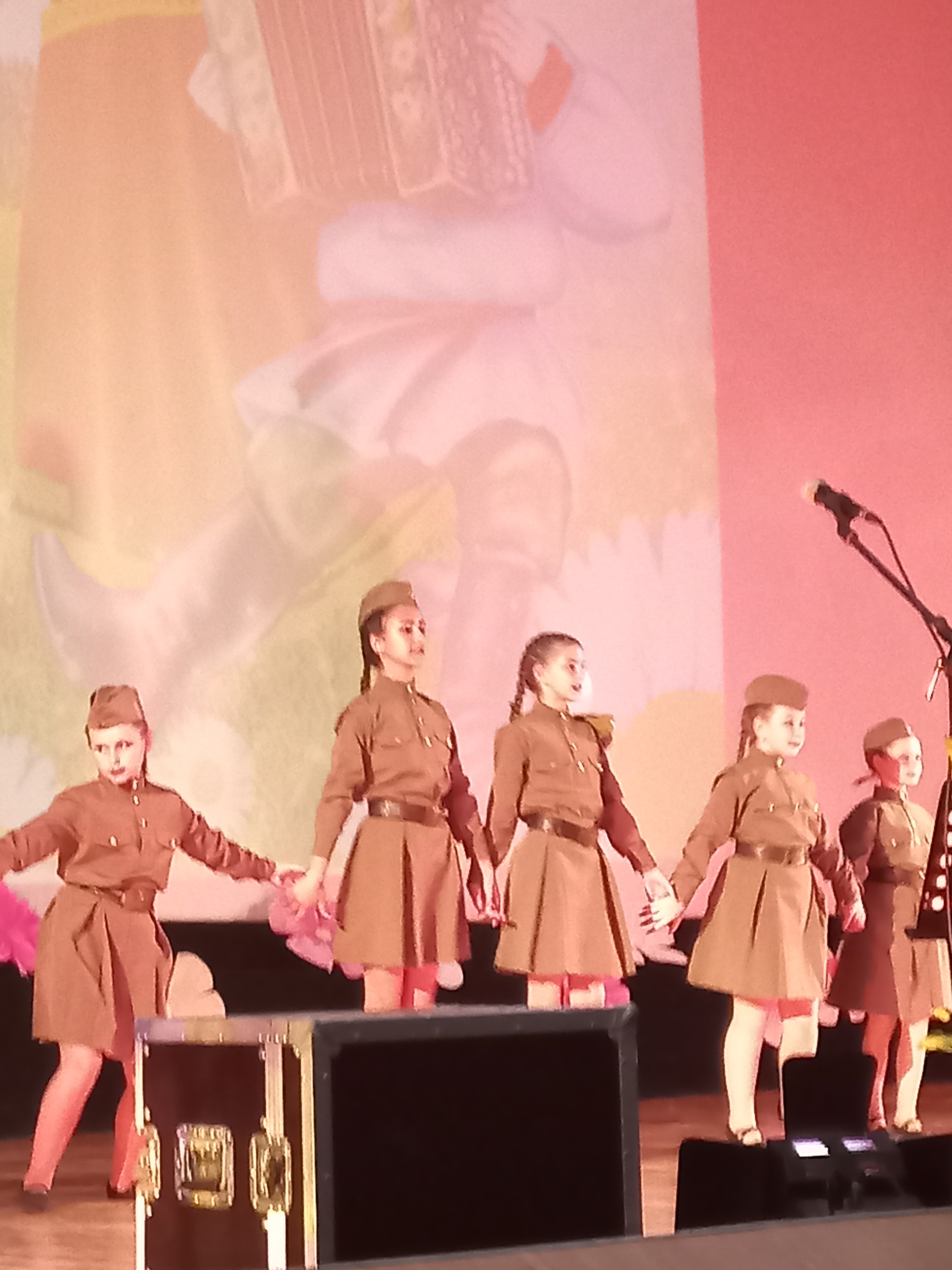 Ребята в военной форме исполнили танцы: «Смуглянка» и «Казаки в Берлине». А Дмитрий Лебеденко открыл наш концерт песней « Россия»!